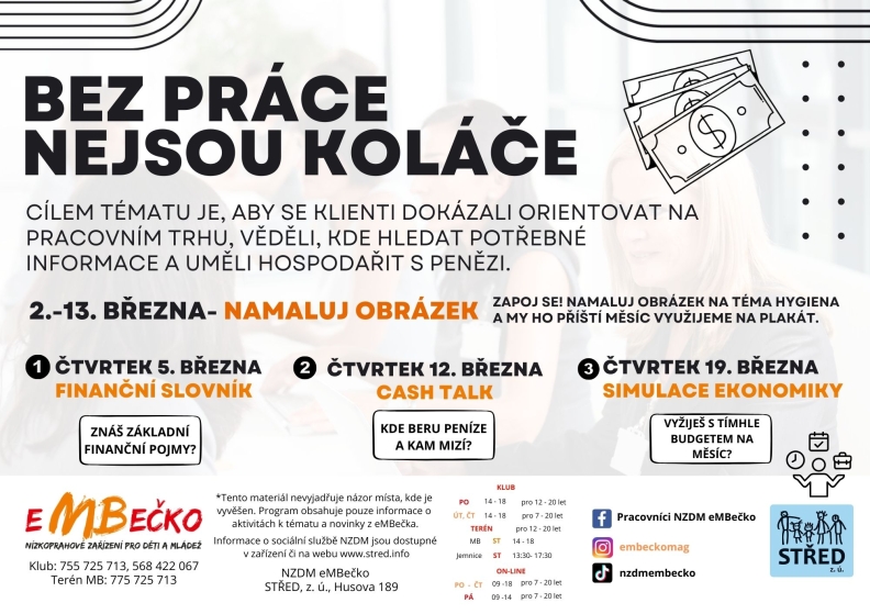Klienti nás mohou kontaktovat online přes facebookový profil (Pracovníci NZDM eMBečko) nebo instagramový profil (embeckomag), požádat o informace, radu a dostávat pravidelné informace o dění v eMBečku.